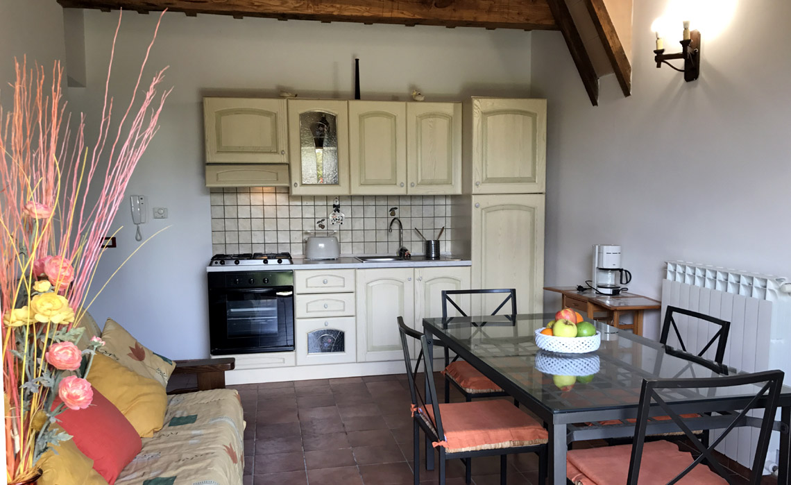L’appartamento “Il Giardino” è situato al piano terra, è di circa 40 mq., ed è composto da soggiorno con angolo cottura e divano-letto matrimoniale, camera da letto con letto matrimoniale e letto singolo e bagno. Può ospitare fino a 4 persone.